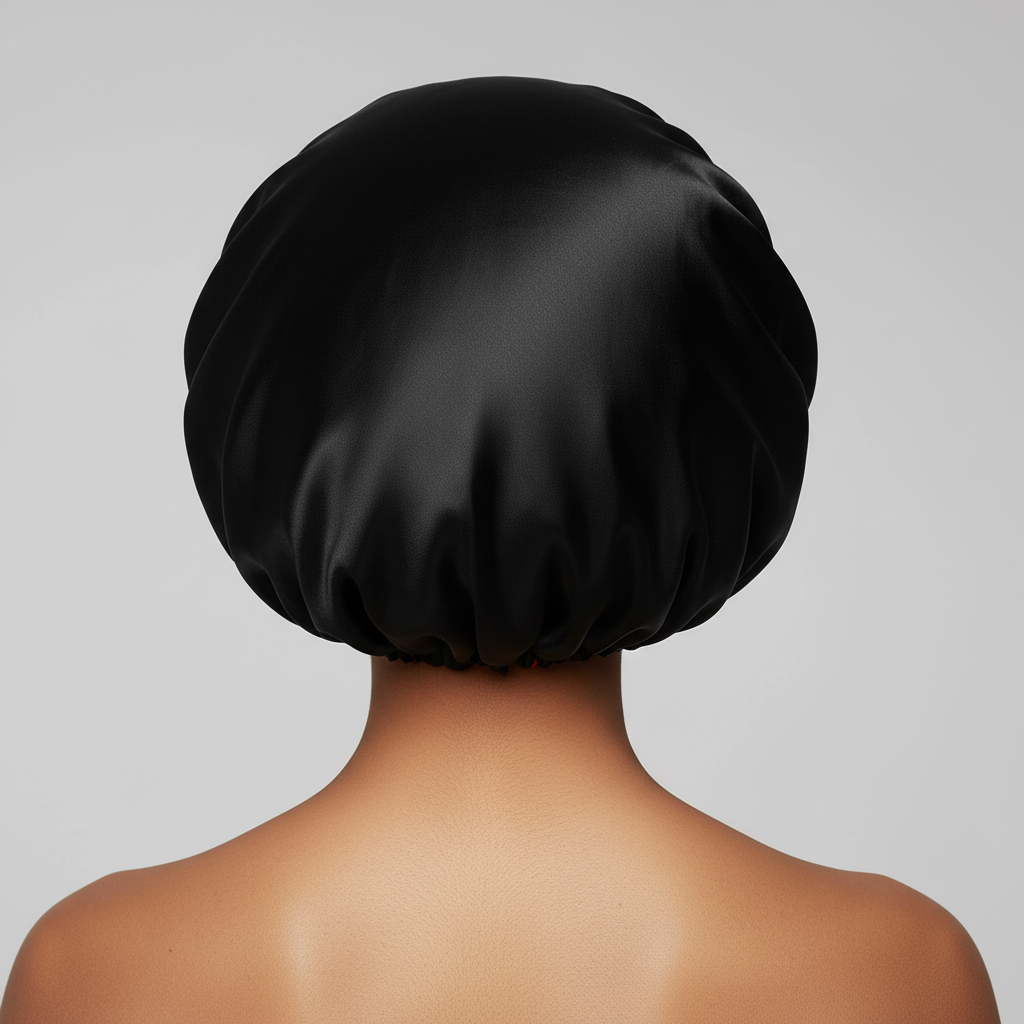 Protégez vos cheveux pendant votre sommeil avec notre Bonnet En Satin Noir Nuit Capillaire.