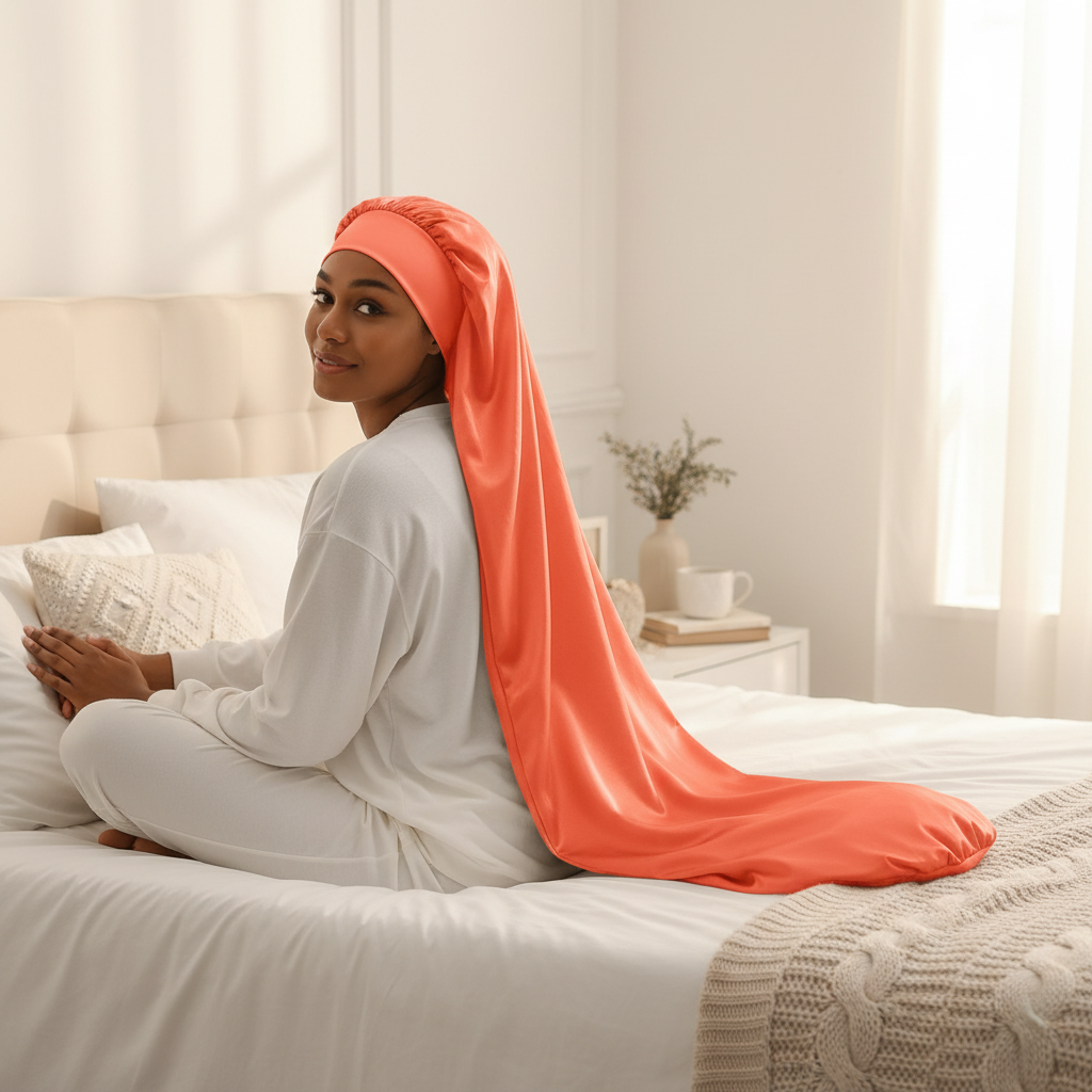 Bonnet En Satin Orange Long Nuit : Protection Capillaire Nocturne