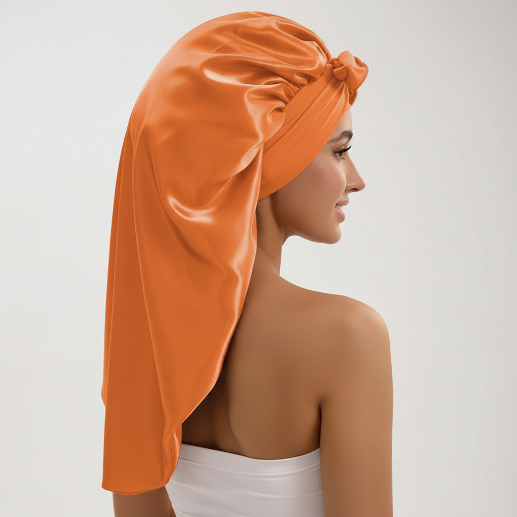 Bonnet En Satin Orange Pour Cheveux Longs