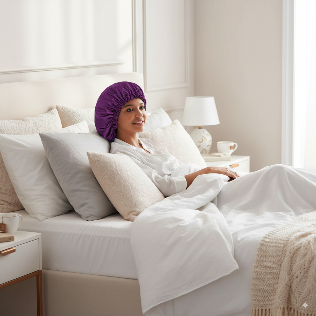 Protégez vos cheveux pendant votre sommeil avec notre bonnet de nuit en satin doux et élégant, parfait pour préserver votre coiffure.