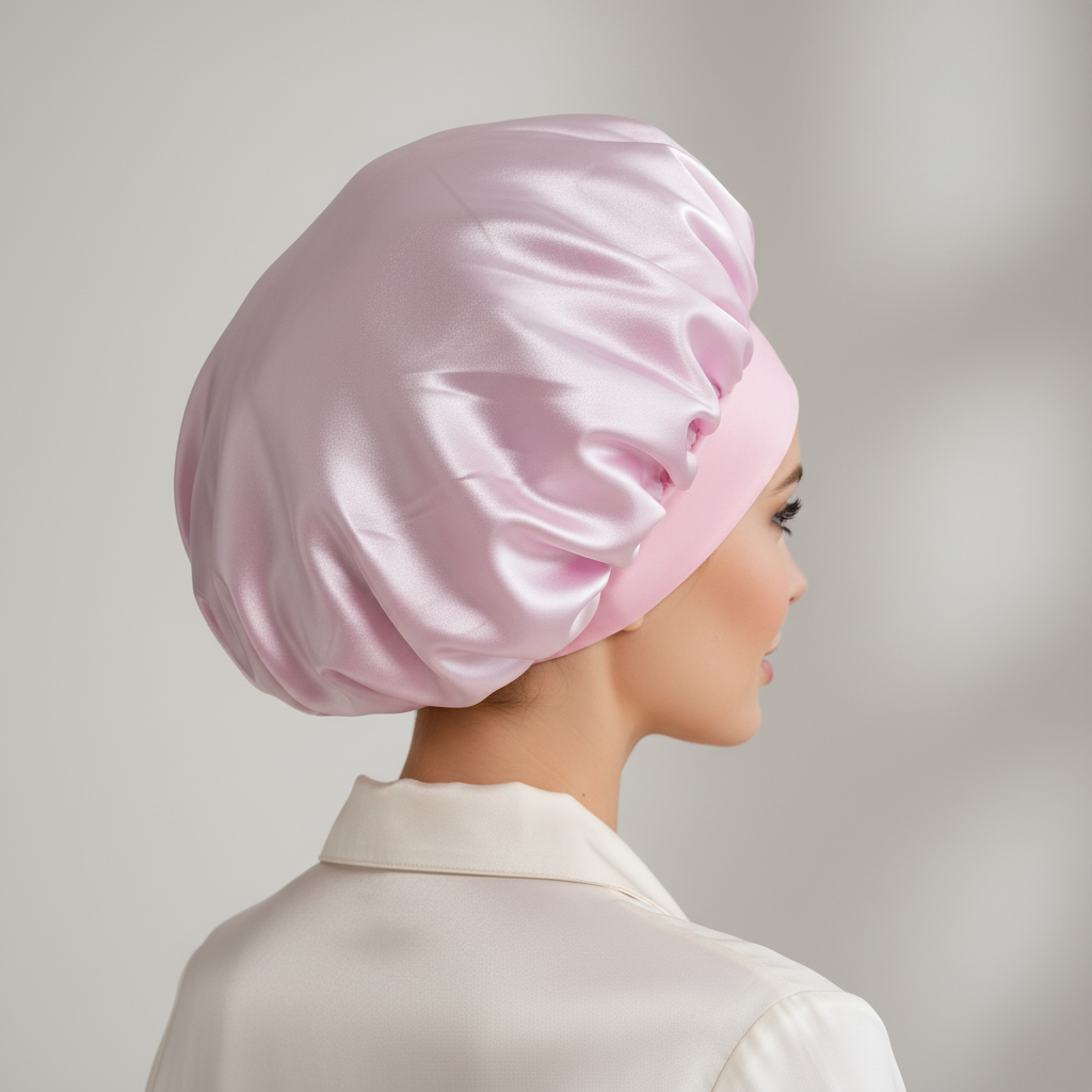 Le bonnet en satin est utilisé pour envelopper la chevelure. La texture du satin est conçue pour limiter les frottements mécaniques des cheveux avec les surfaces telles que les oreillers, ce qui peut affecter la structure capillaire. Il aide également à maintenir une certaine humidité autour des cheveux, ce qui peut influencer l'efficacité des produits capillaires appliqués.