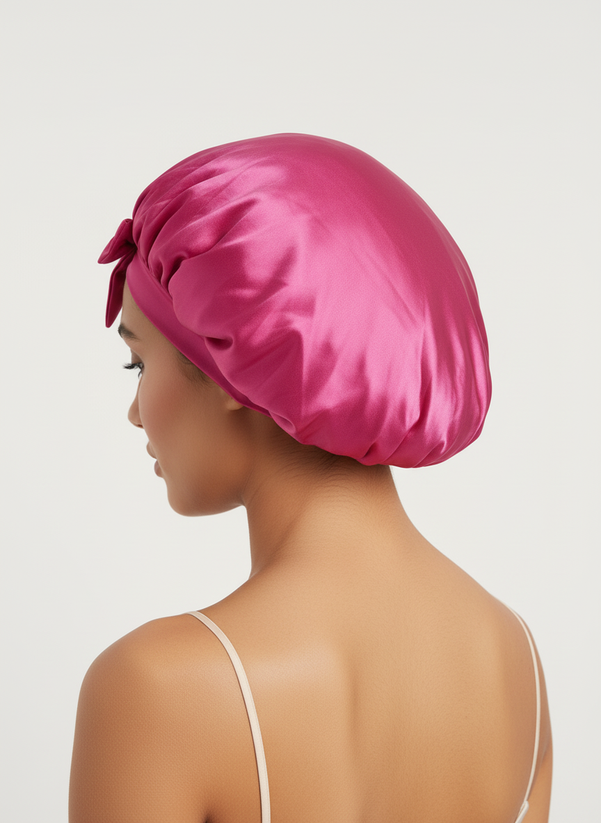 Bonnet de Nuit en Satin Rose Fuchsia avec Nœud