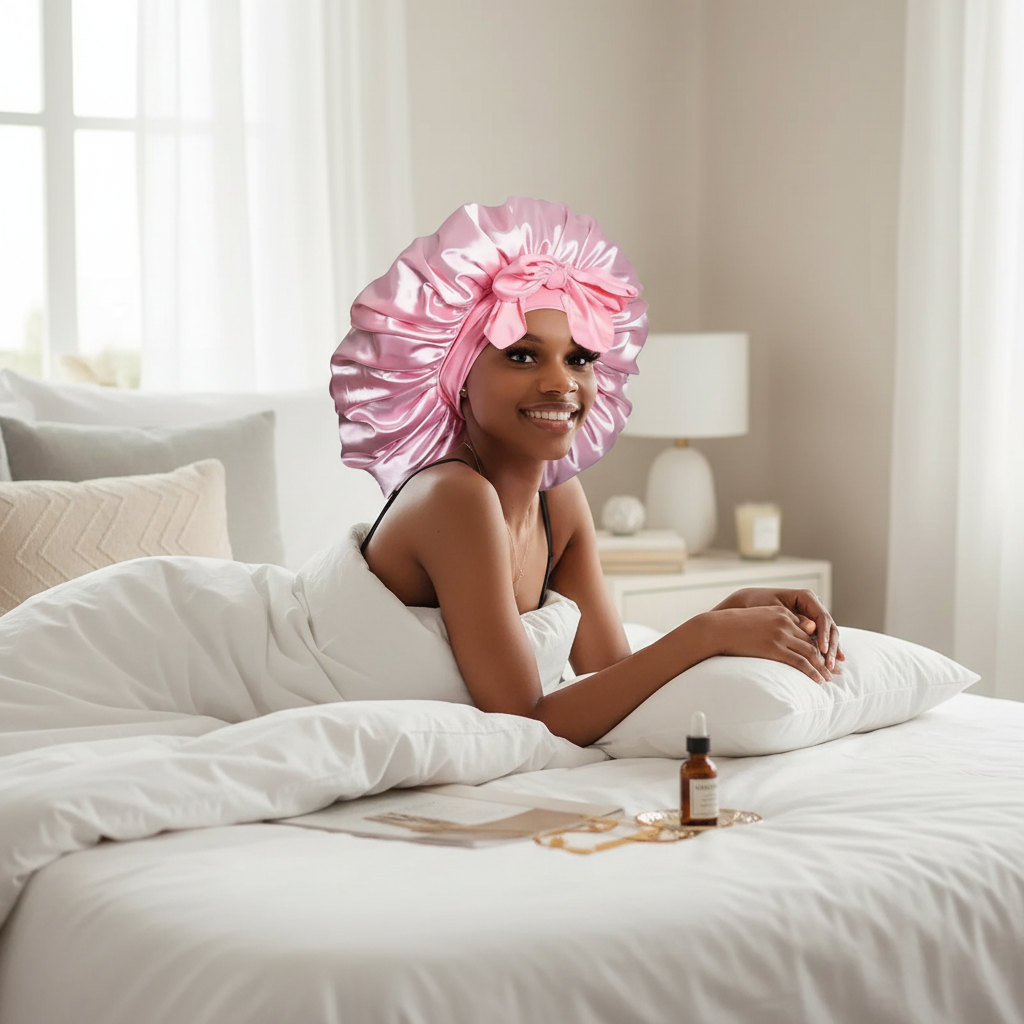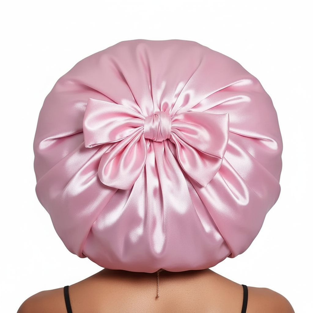 Bonnet En Satin Rose Ajustable Pour Cheveux