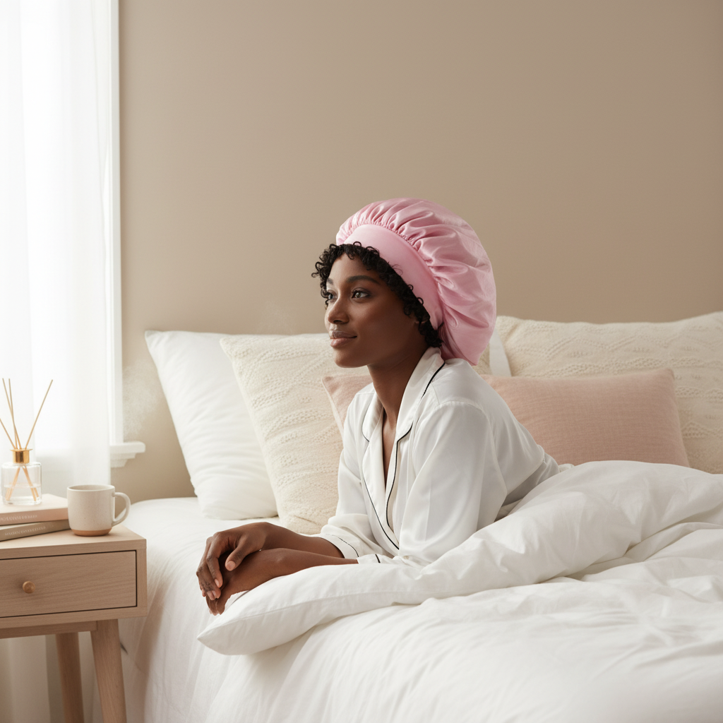 Le Bonnet En Satin Rose Ample De Nuit : Bonnet de nuit en satin