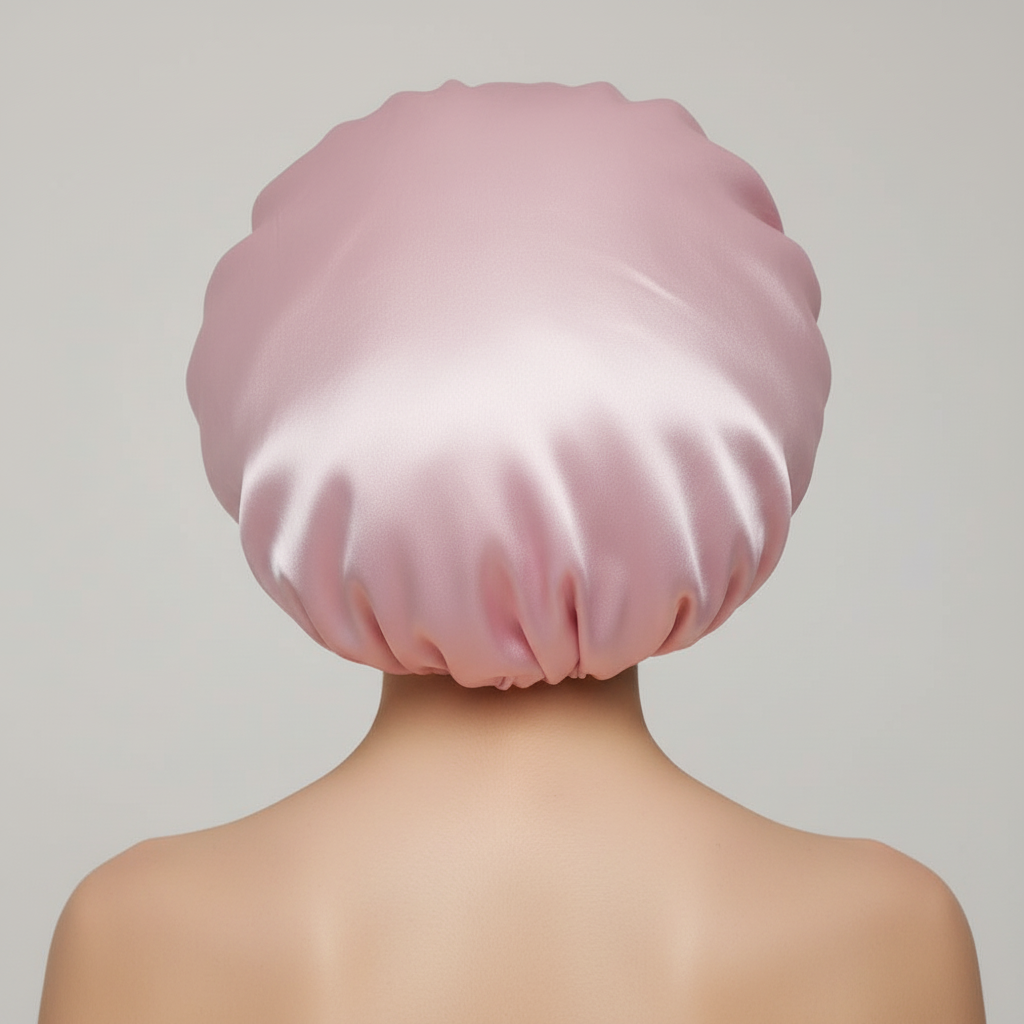 Protégez vos cheveux avec élégance et douceur grâce à notre bonnet en satin rose à nouer.