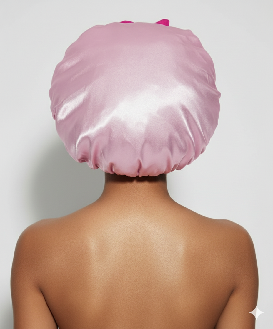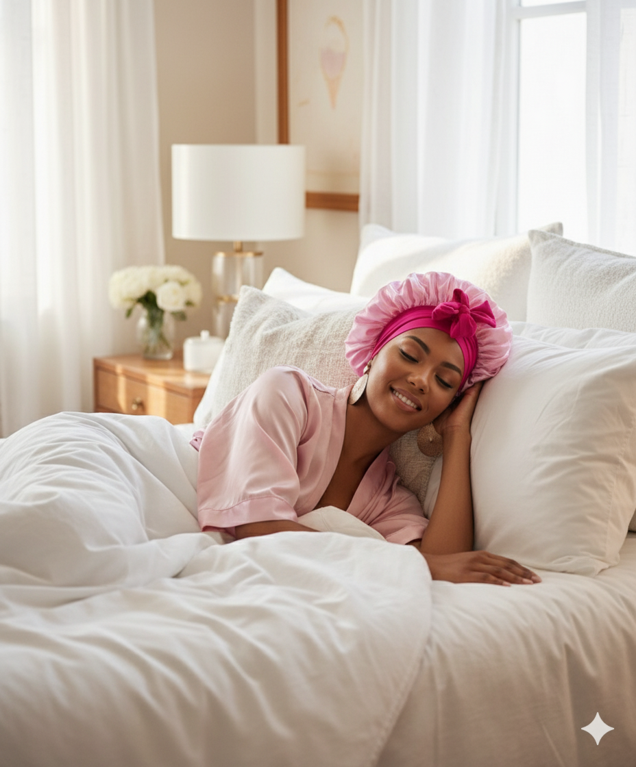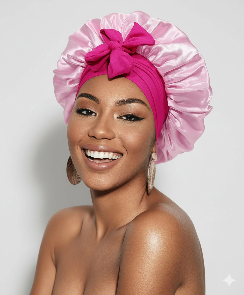 Bonnet En Satin Rose Avec Nœud Nuit : Accessoire de protection capillaire nocturne