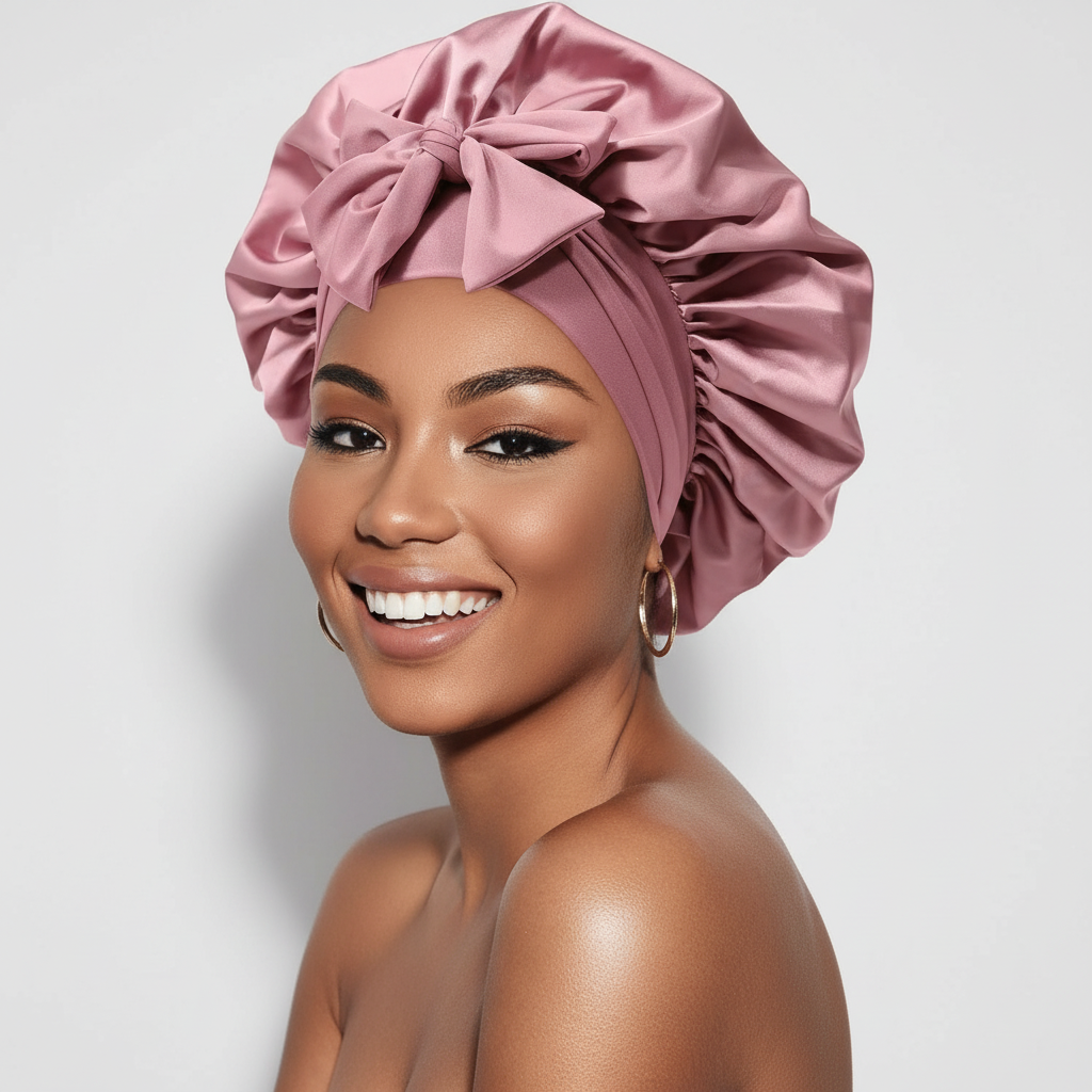 Bonnet En Satin Rose Avec Nœud Pour Femme