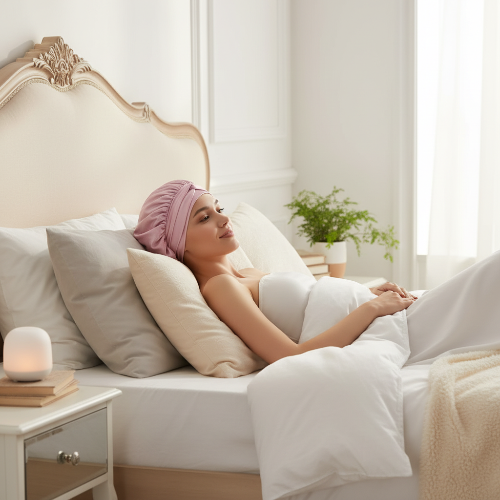 Bonnet En Satin Rose Bandeau Torsadé De Nuit