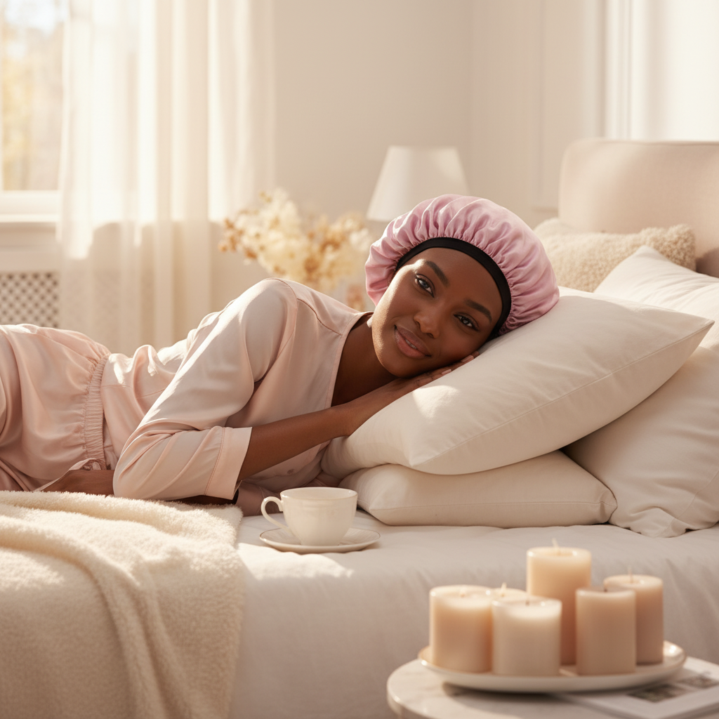 Protégez vos cheveux avec élégance grâce à notre bonnet en satin rose, conçu pour allier confort et style.