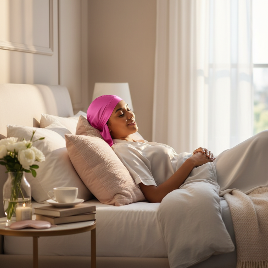 Offrez à vos cheveux la douceur et la protection qu'ils méritent avec ce magnifique bonnet en satin rose.