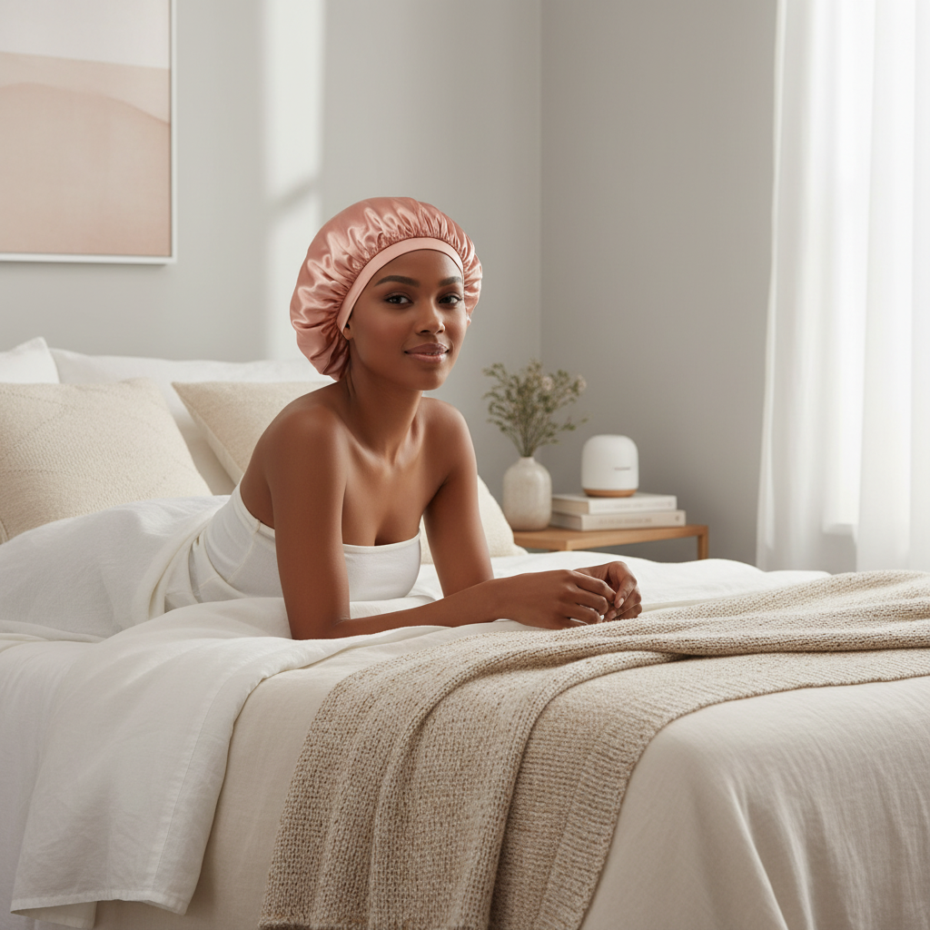 Bonnet En Satin Rose Doux Pour La Nuit : Ajustable