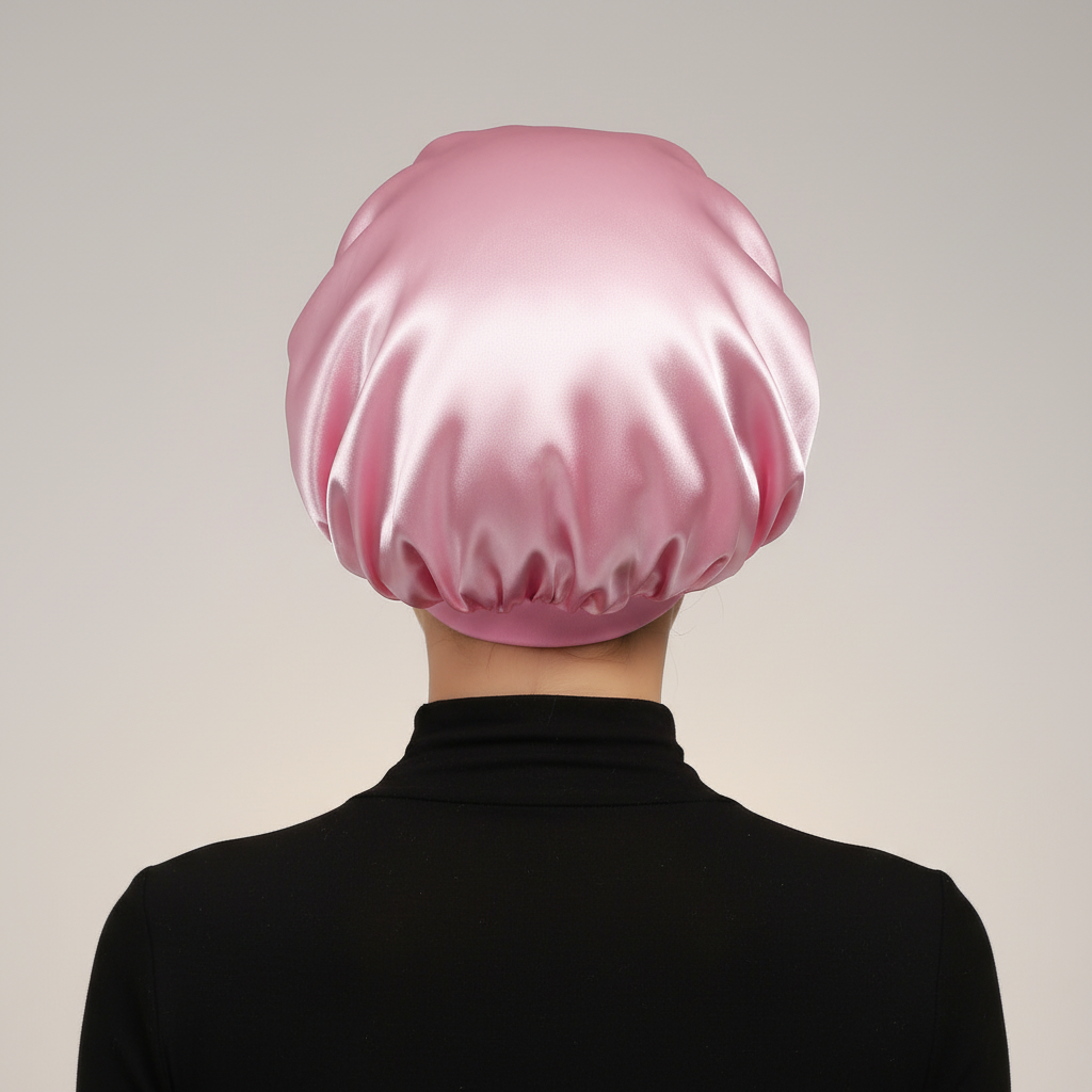 Préservez la beauté de vos boucles avec notre bonnet en satin rose, idéal pour une protection nocturne.