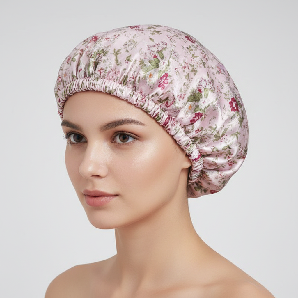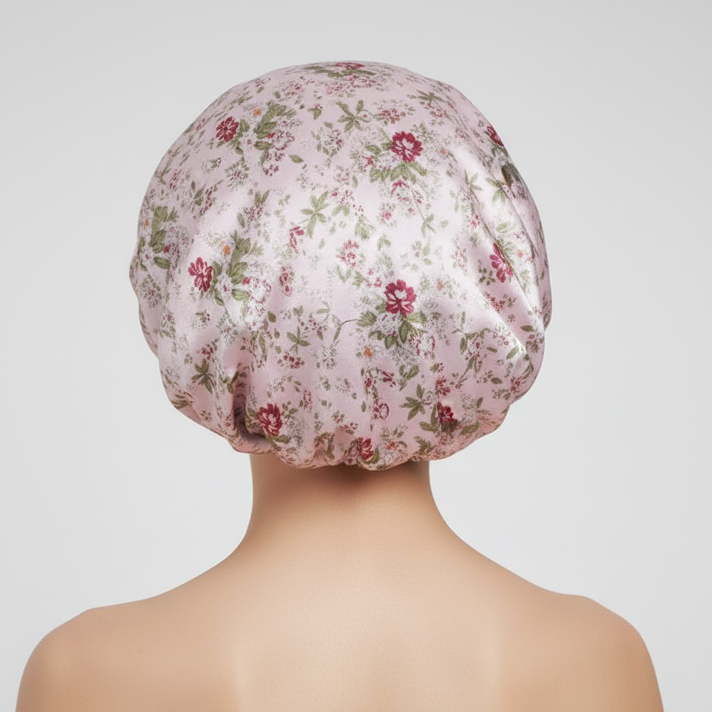 Bonnet En Satin Rose Imprimé Floral pour Protection Capillaire
