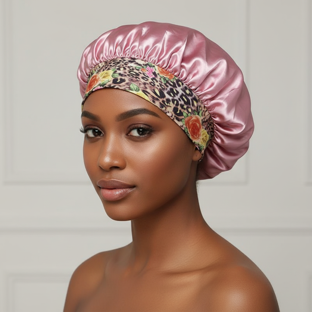 Bonnet En Satin Rose Léopard Pour La Nuit