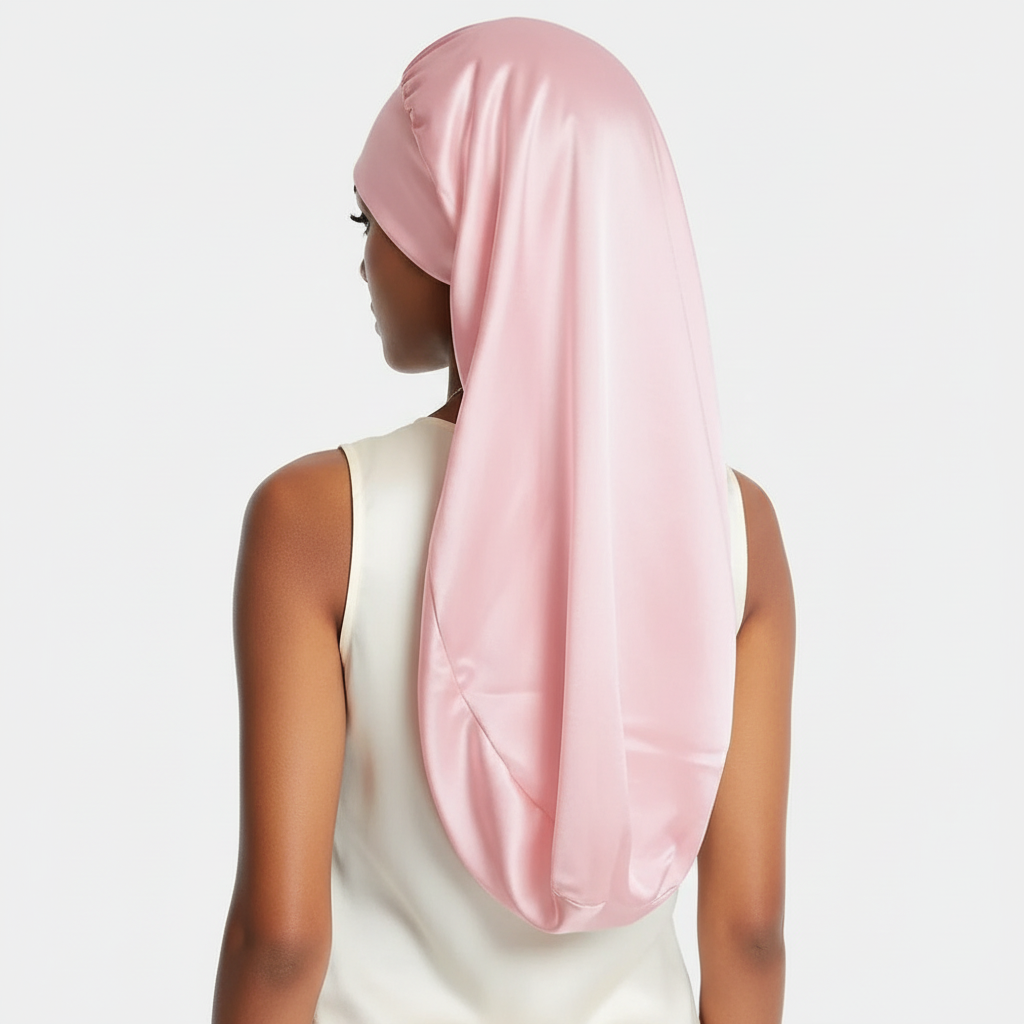 Bonnet En Satin Rose Pour Cheveux Longs à Très Longs