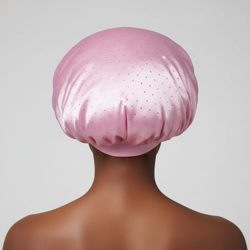 Bonnet En Satin Rose Strass Nuit pour la protection capillaire