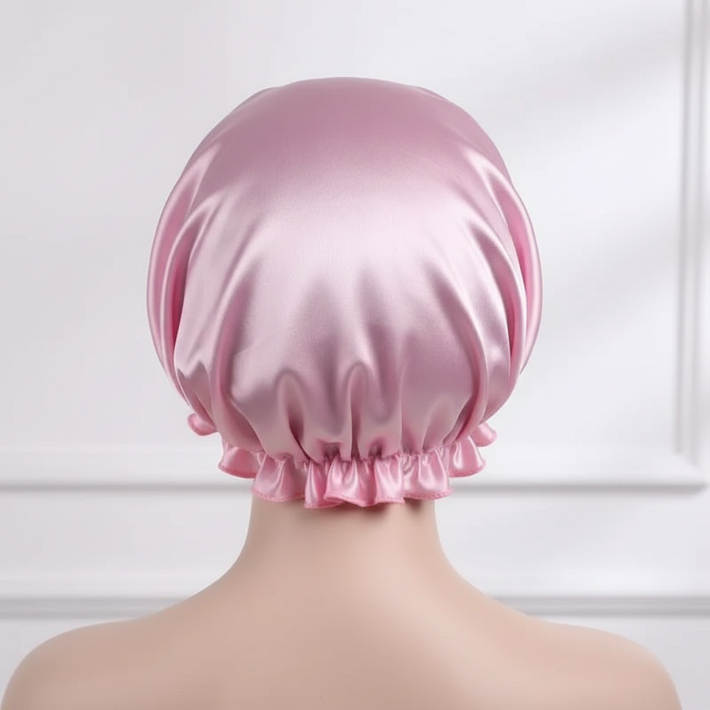 Le bonnet en satin est destiné à envelopper les cheveux durant la nuit. Sa surface lisse est conçue pour minimiser les frottements capillaires contre l'oreiller. Son usage vise à maintenir les coiffures en place et à limiter le contact direct des cheveux avec les surfaces de literie.