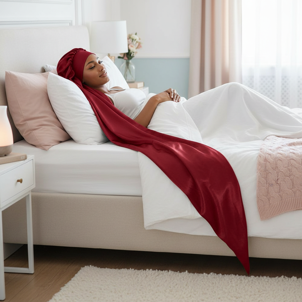 Protégez vos cheveux avec élégance chaque nuit grâce à notre bonnet en satin rouge, conçu pour le confort et le soin.