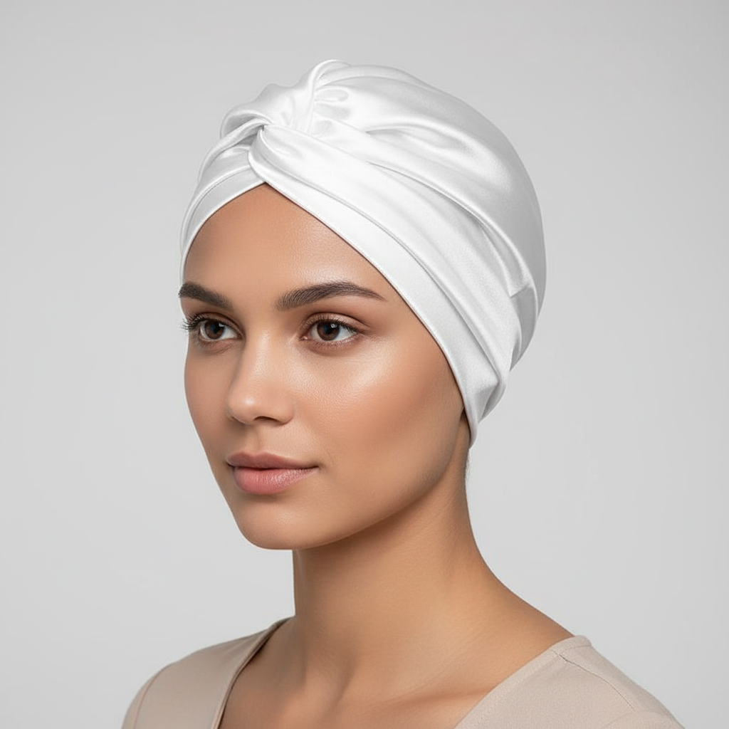 Bonnet En Satin Turban Blanc Femme