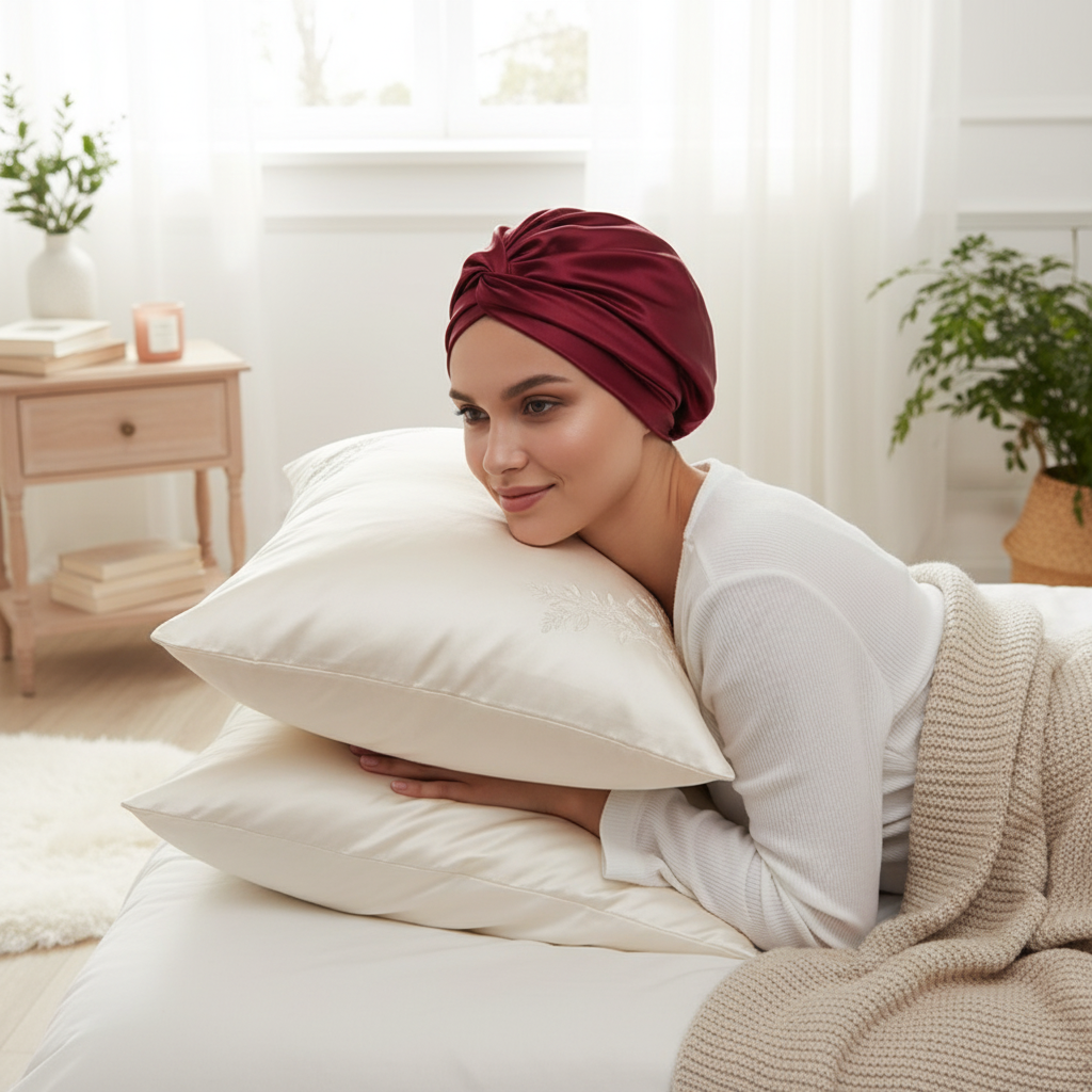 Bonnet En Satin Turban Bordeaux Pour La Nuit