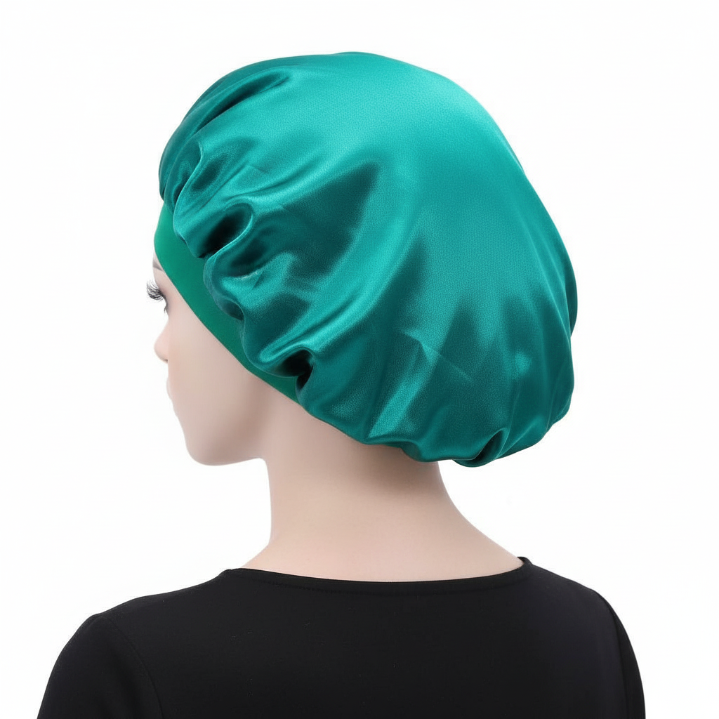 Protégez vos cheveux avec style et confort grâce à notre bonnet de nuit en satin vert élégant.