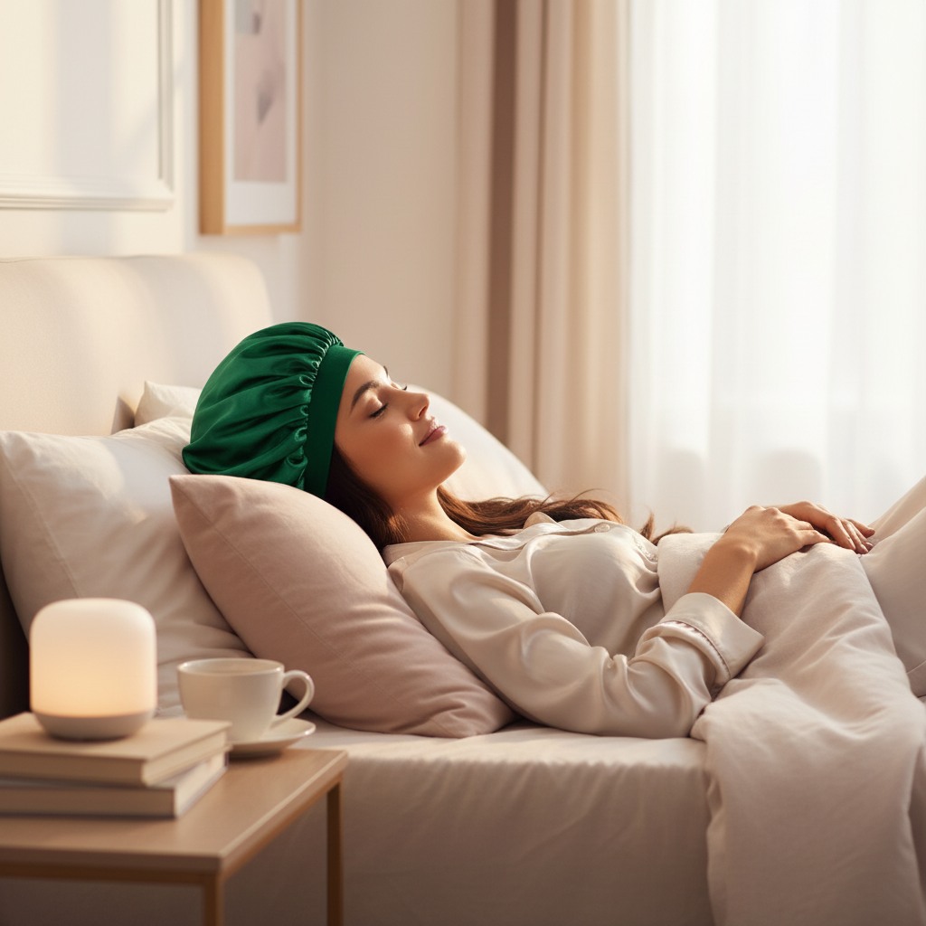 Bonnet de Nuit en Satin Vert avec Bande Élastique