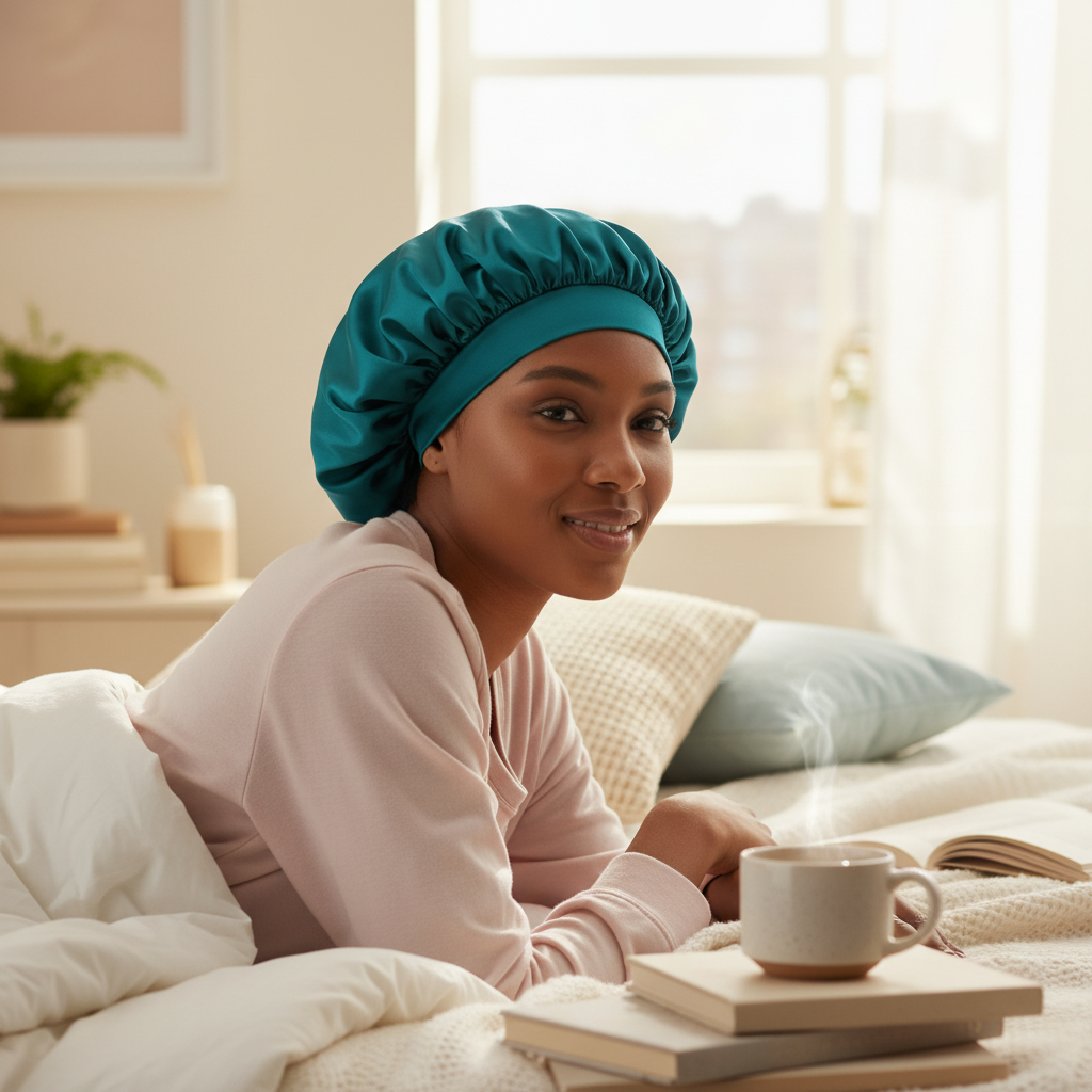 Bonnet En Satin Vert Émeraude Protection Capillaire