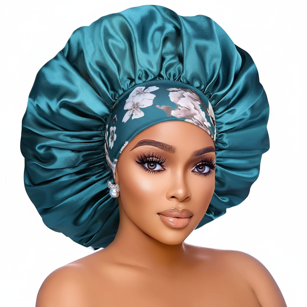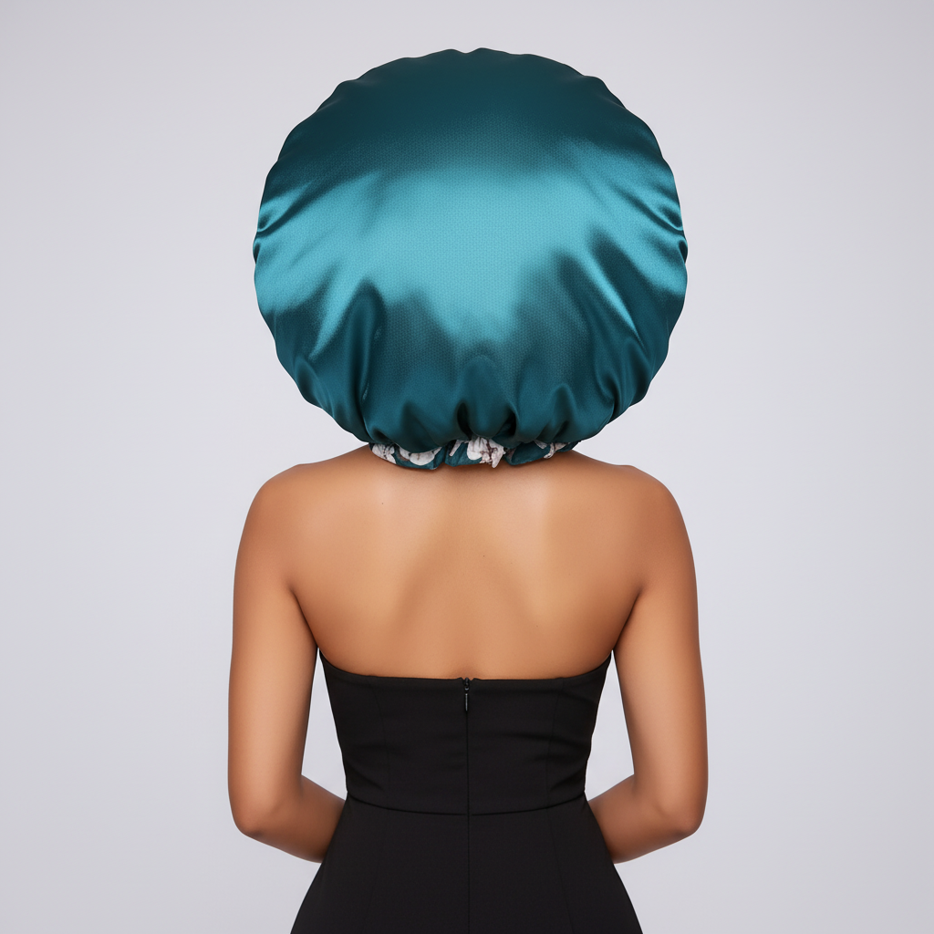 Bonnet En Satin Vert Sarcelle Floral Nuit