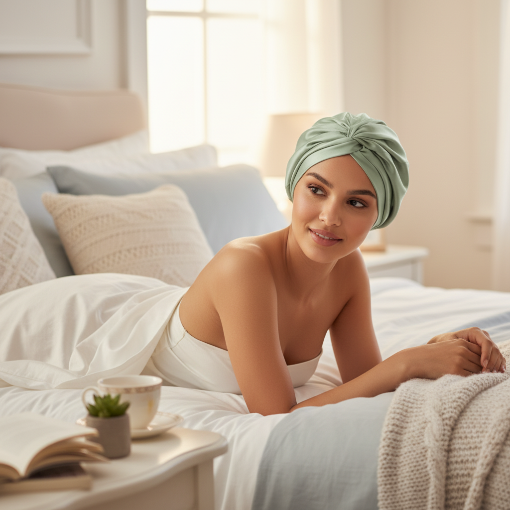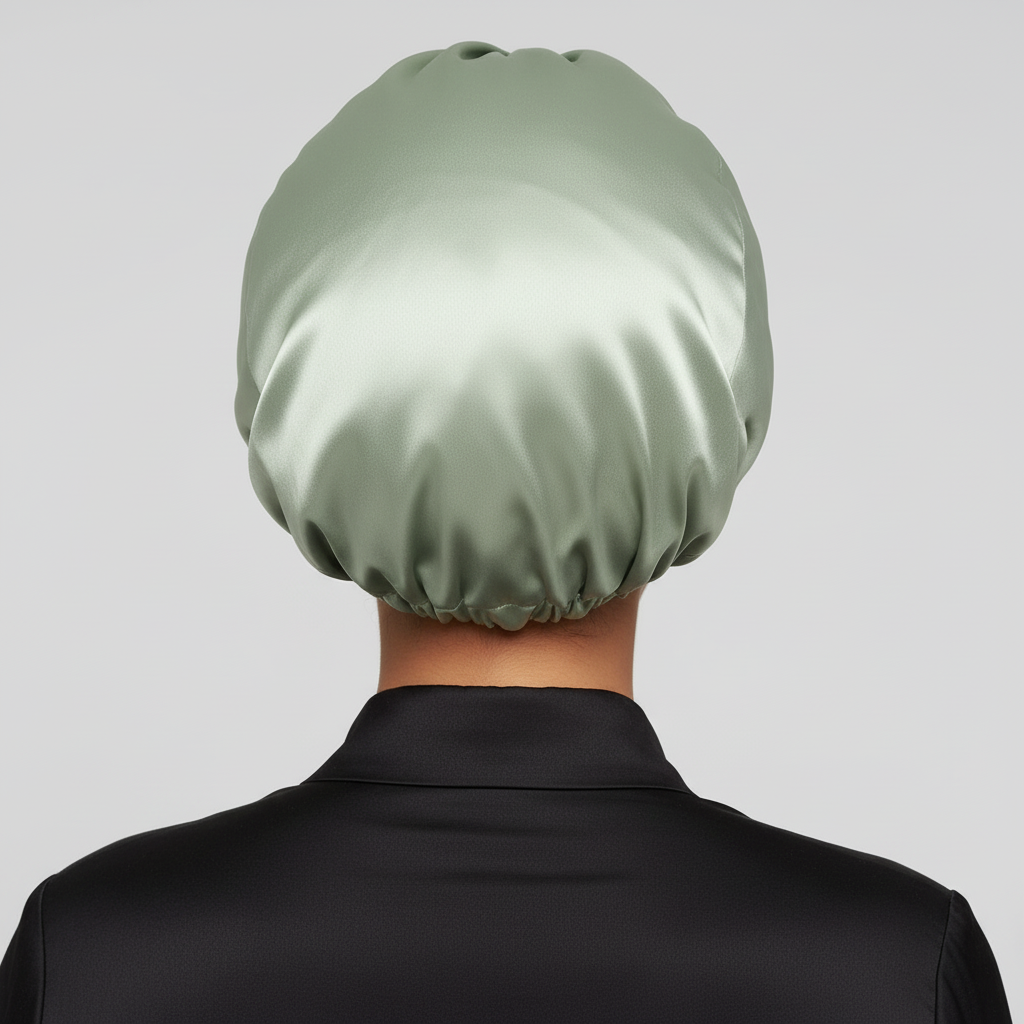 Préservez la beauté de vos cheveux chaque nuit avec notre bonnet en satin vert, conçu pour une protection optimale et un confort absolu.