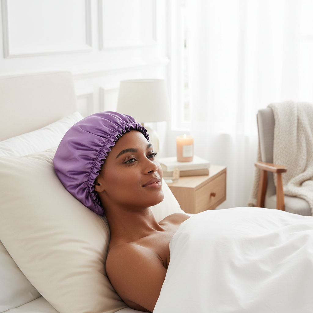 Bonnet En Satin Violet Élastique Confort Nuit : Protection Capillaire