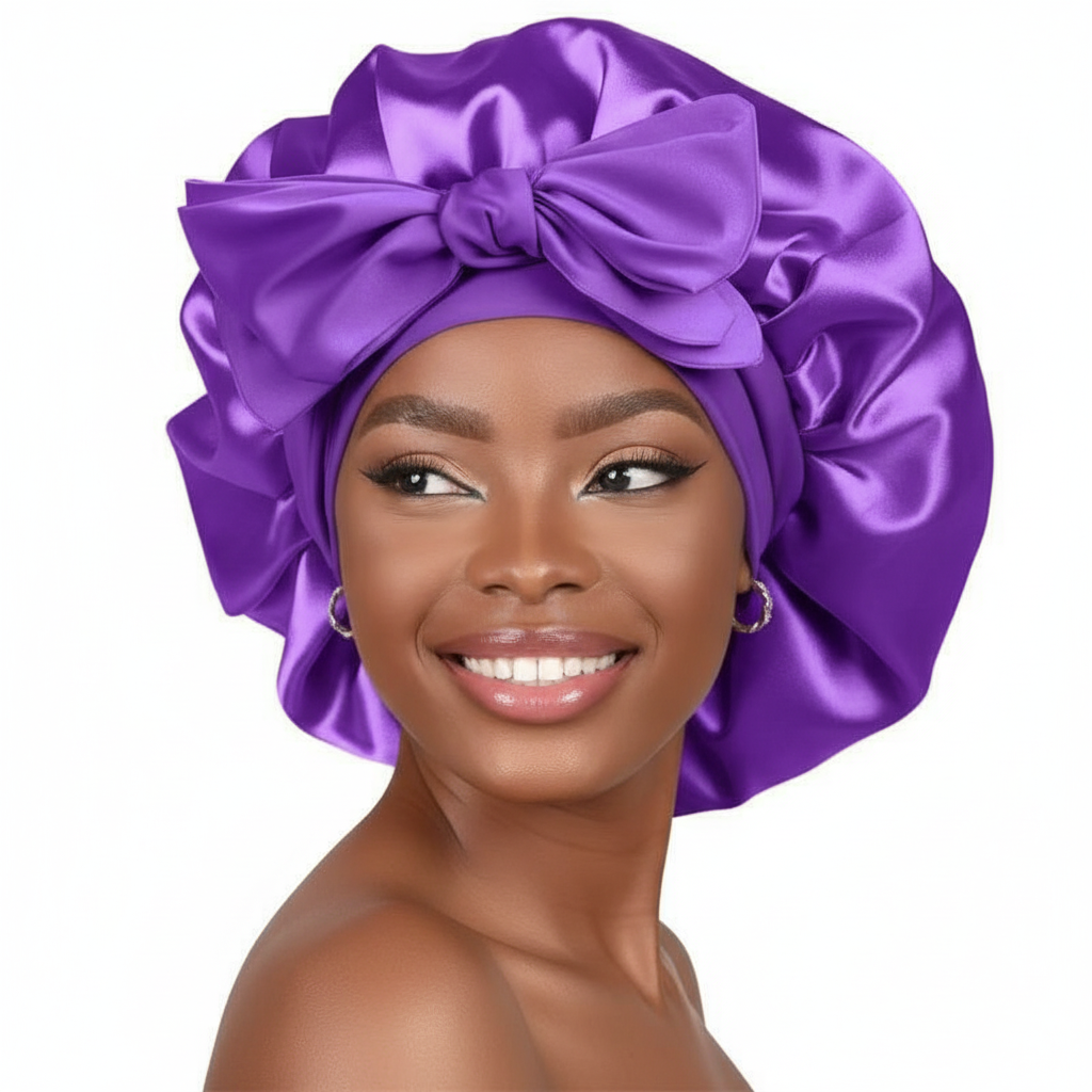 Bonnet En Satin Violet Grand Nœud Cheveux