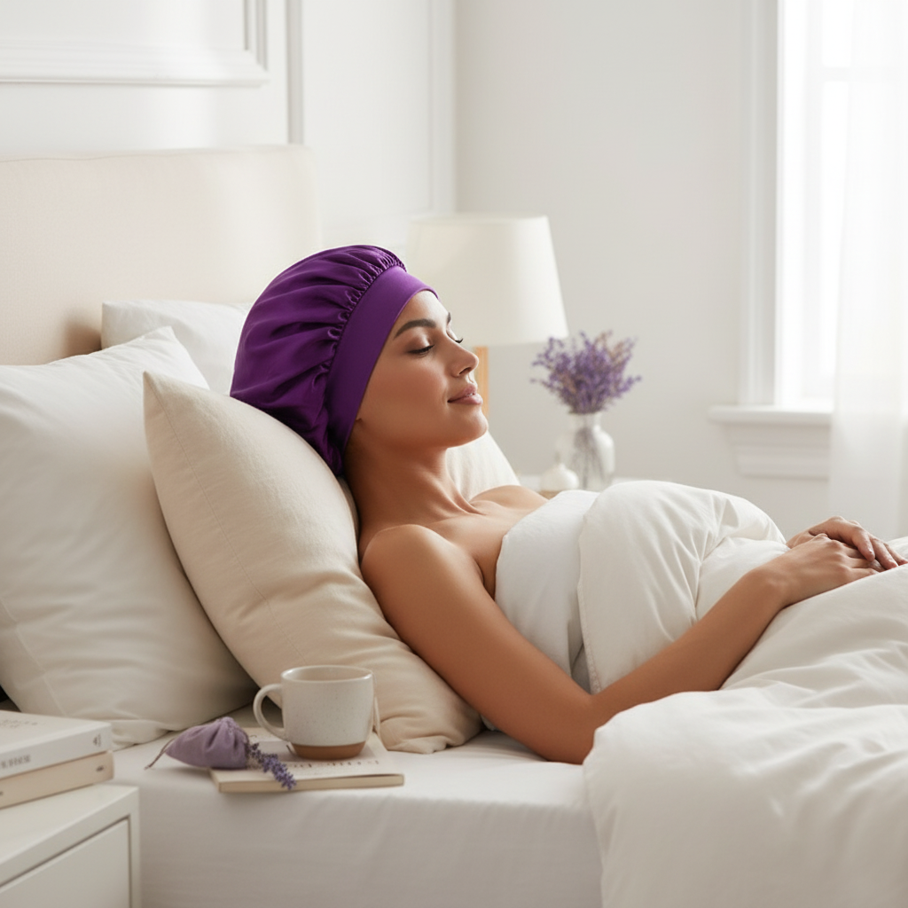 Le bonnet en satin est utilisé pour limiter le frottement des cheveux contre l'oreiller durant le sommeil. Il permet de maintenir les cheveux en place et de protéger les coiffures nocturnes.