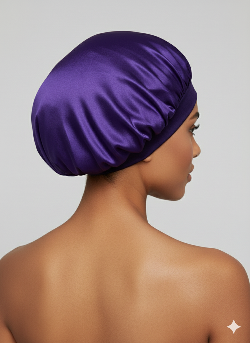 Protégez vos cheveux avec élégance grâce à notre bonnet en satin violet uni, idéal pour préserver leur douceur et leur brillance.