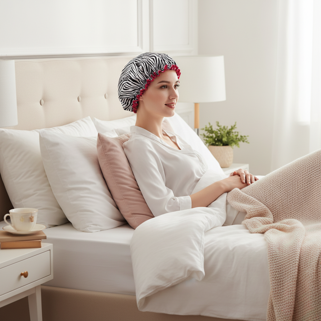 Bonnet En Satin Zèbre Fuchsia Pour Douche