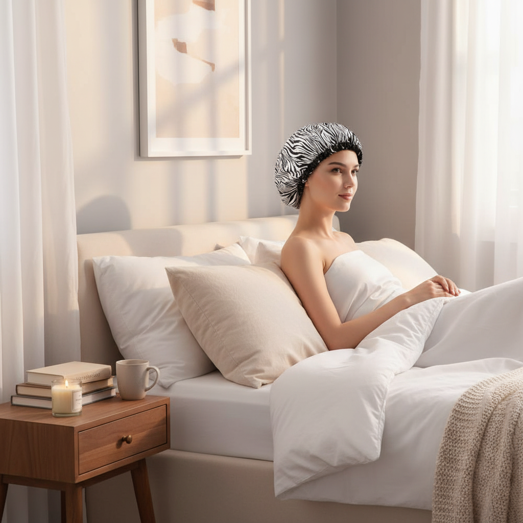 Gardez vos cheveux doux et protégés toute la nuit avec notre élégant bonnet en satin zébré.