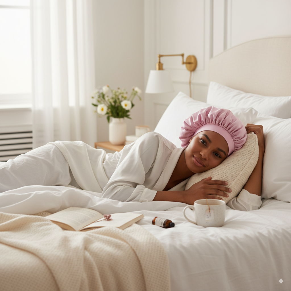 Protégez vos cheveux avec notre grand bonnet en satin, conçu pour préserver leur hydratation et leur brillance pendant votre sommeil.